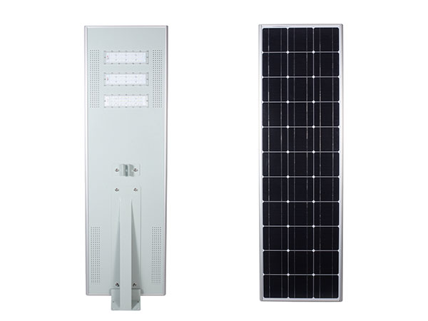 由一体化照明模块(内置:高效光伏组件、大容量锂电池、微电脑MPPT智能控制器、高亮度LED光源)、灯杆组成。